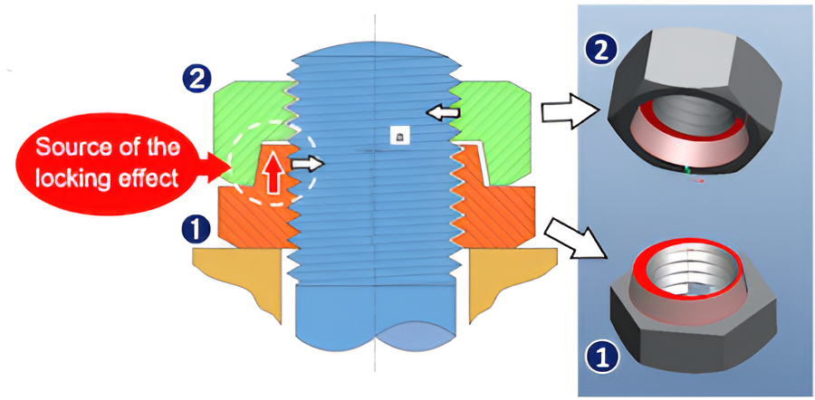 - This wedging force mechanically locks the nut to the bolt, not relying on friction, deformation, or adhesives